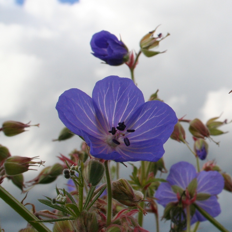 A perennial of south east Scotland, Meadow Cranesbill has large, open violet-blue flowers. The fruit forms a long claw or beak which gives the plant its common names. When ripe, the ‘beak’ springs open, catapulting ripe seeds from the plant.